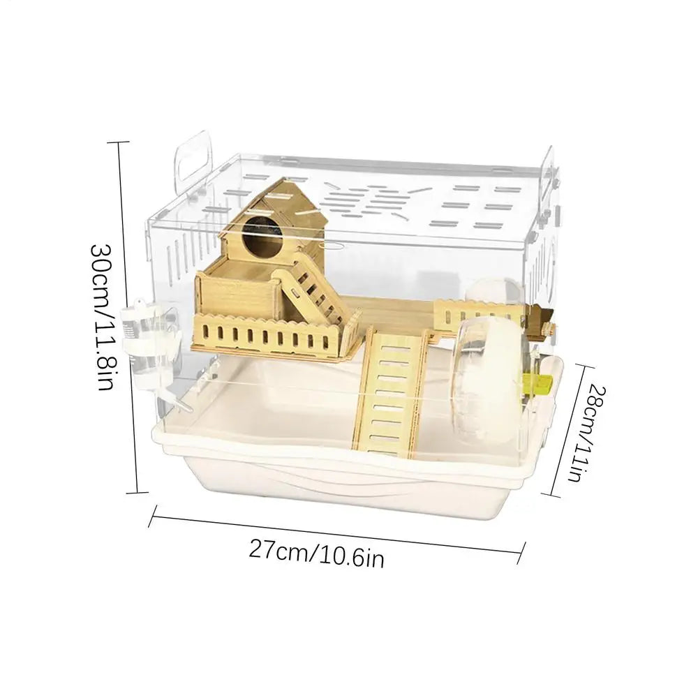 Acrylic Hamster Cage Wooden Small Animal Cage Accessories 2-Layer Small Pet Breathable House For Dwarf Hamsters Mice Gerbils