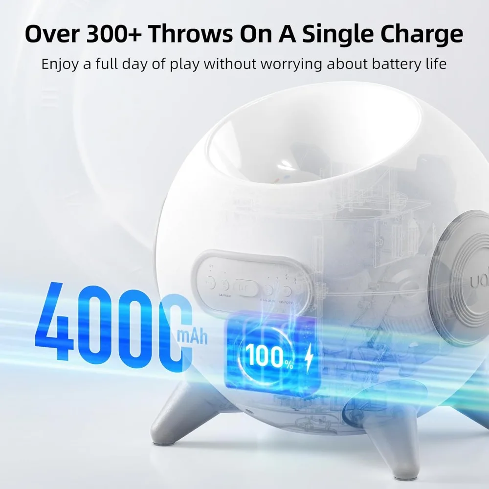 - Long-Lasting Battery for Continuous Fun - Equipped with a 4000mAh high-capacity battery, the iRetriever dog fetch ball thrower supports 300 to 800 launches on a single charge, eliminating the hassle of frequent recharging. Your pet can enjoy extended playtime, while you relax and enjoy quality interaction with your furry friend.