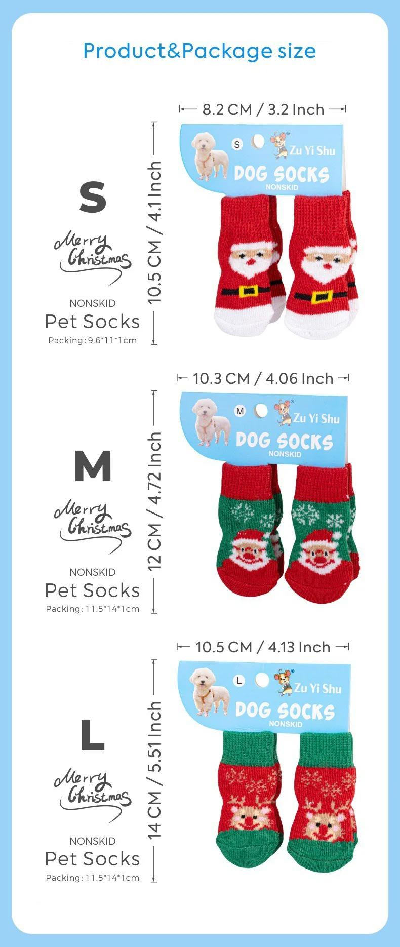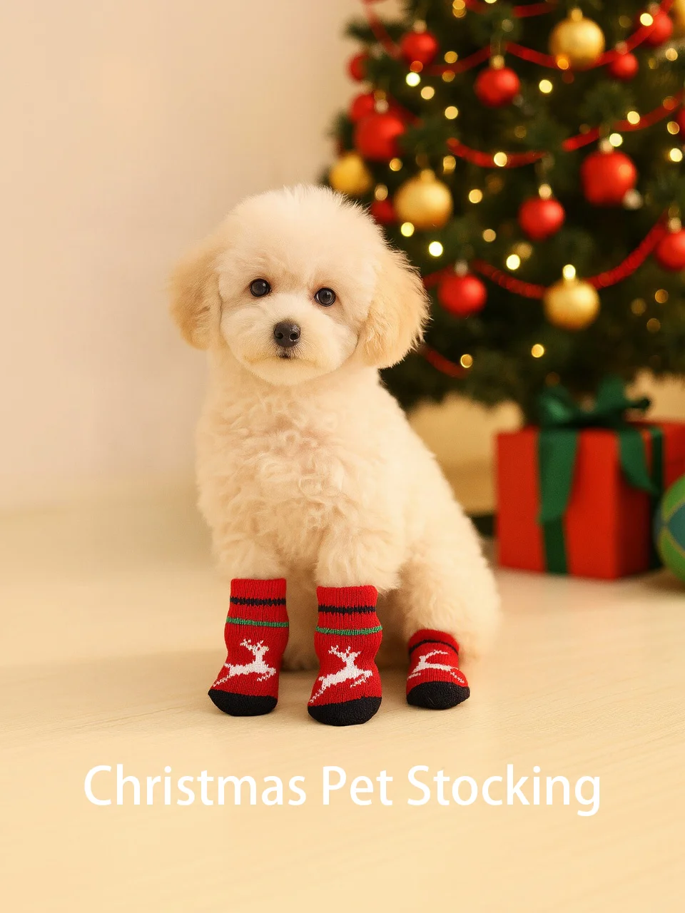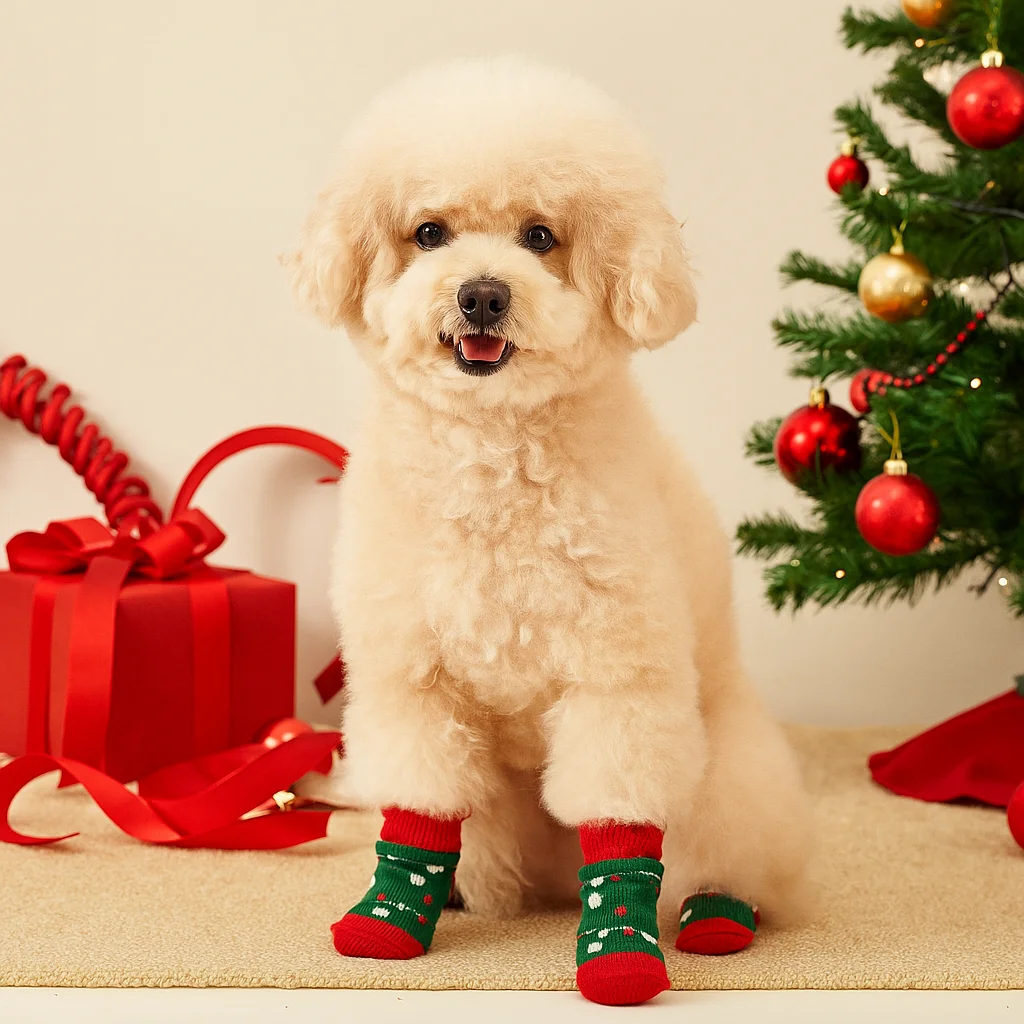 Christmas Pet Socks For Small Dogs Cat Shoes Boots For Winter Warm Knitted Indoor Wear Slip On Paw Protector 4PCS