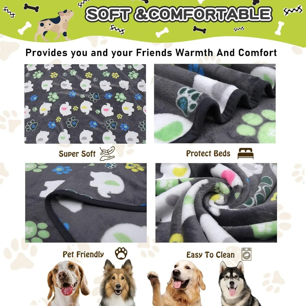 - 👍PREMIUM DOG BLANKET FOR BABY: Super soft, warm and cozy fleece for your pet, unique and cute elephant and paw print design on top, You can get flannel and bright blankets in three different colors, reversible, no worries about peeing, biting, chewing and tearing. putting a warm blanket over dog bed or kennel would get hyperactive pets calm and anxiety relief and to have a good sleep.Your dog will love this dog products!