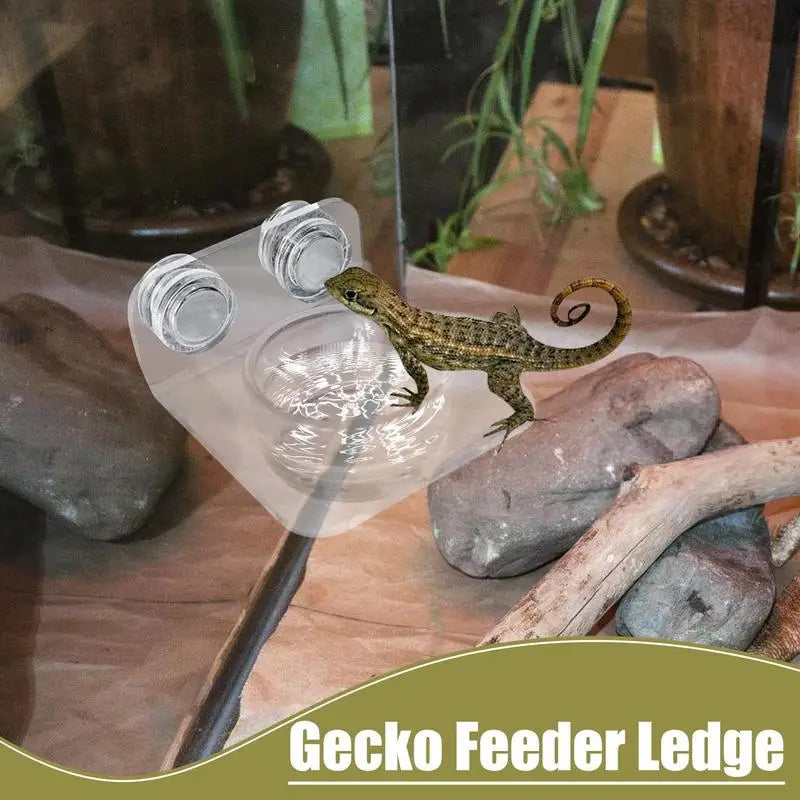 Gecko Feeder Ledge: Easy Installation Reptile Feeding Station for Lizards, Chameleons, Tree Frogs