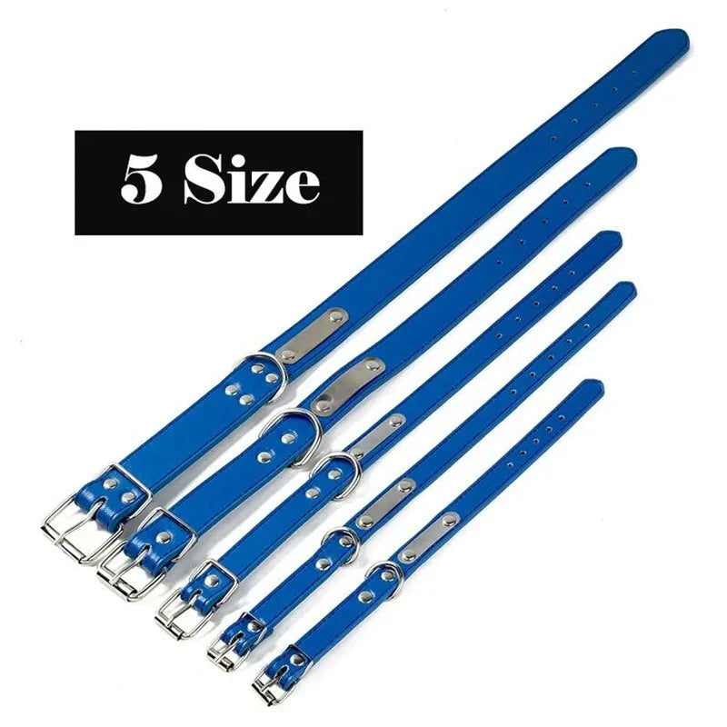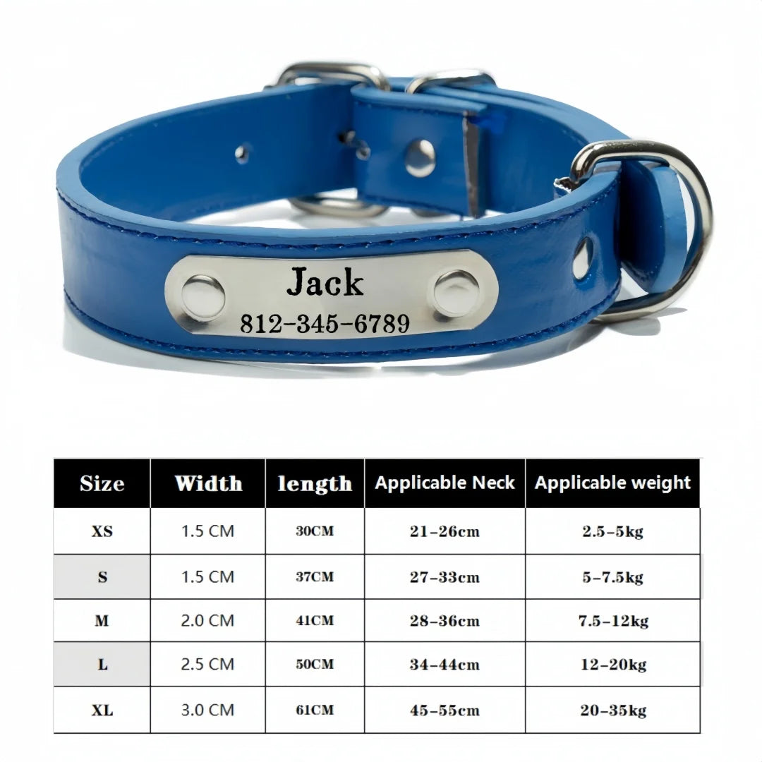 Personalized Dog Collar Name Carved ID Tag Anti-lost Solid PU Leather Collar For Small Medium Large Dogs Puppy Cat Pet Supplies